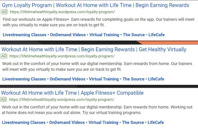 Designed PPC lead generation search campaign based on Life Time Athletic Boca Raton via Google Ads